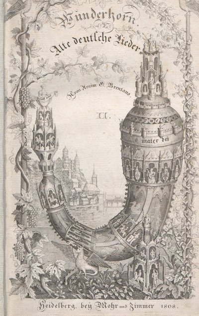 Po politycznym kataklizmie lat 1805-1807 żyjące pod francuskim reżimem okupacyjnym niemieckie elity intelektualne podejmują mniej lub bardziej uświadomione poszukiwania sił, które pozwoliłyby ich krajowi podnieść się po druzgoczącej i szokującej klęsce. Różnymi drogami dochodzą do wniosku, że Niemcy muszą, jak to się mówiło dawniej, „wejść w siebie” – szukać źródeł mocy we własnej historii, we własnej kulturze, w swoich tradycjach. Znowu nie przez przypadek „Cudowny róg chłopca” ukazuje się w tym samym momencie, w którym ojciec niemieckiego nacjonalizmu, filozof Johann Gottlieb Fichte, wygłasza w Berlinie słynne „Mowy do narodu niemieckiego” (1807-1808), widząc w nim „pranaród” (niem. Urvolk). Do skrajnie odmiennych, ojkofobicznych konkluzji dochodzi inny filozof, Georg Wilhelm Friedrich Hegel, w rozmyślaniach snutych w owych latach najpierw w Jenie, a potem w Norymberdze: wita Napoleona z zachwytem jako dziejowy „rozum na koniu”; cieszy się z klęski w bitwie pod Jeną; kibicuje cudzoziemskim okupantom, gdy przymusem modernizują staroświeckie, zachowawcze społeczeństwo niemieckie; wreszcie potępia brawurowe antyfrancuskie powstanie Niemców z 1813 r.